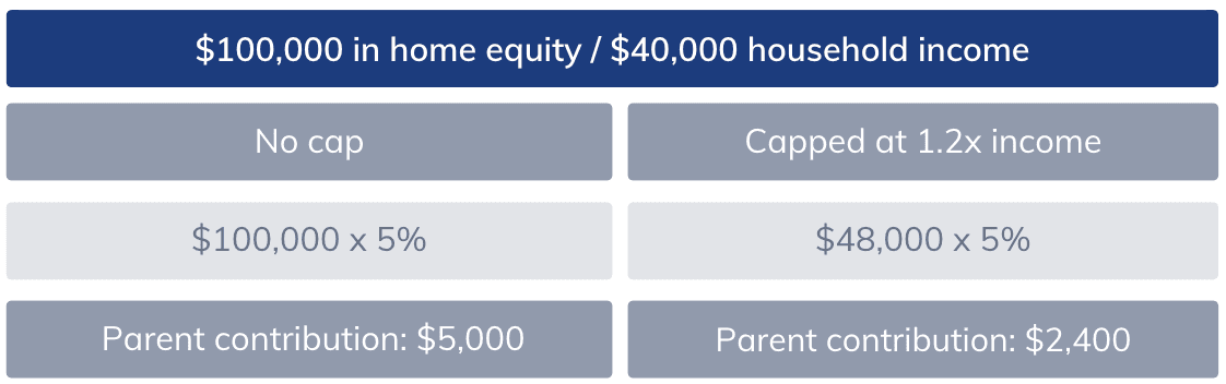 Let’s say you have $100,000 in equity. Parent assets are assessed at 5% in the CSS profile, so that would raise your expected contribution by about $5,000.