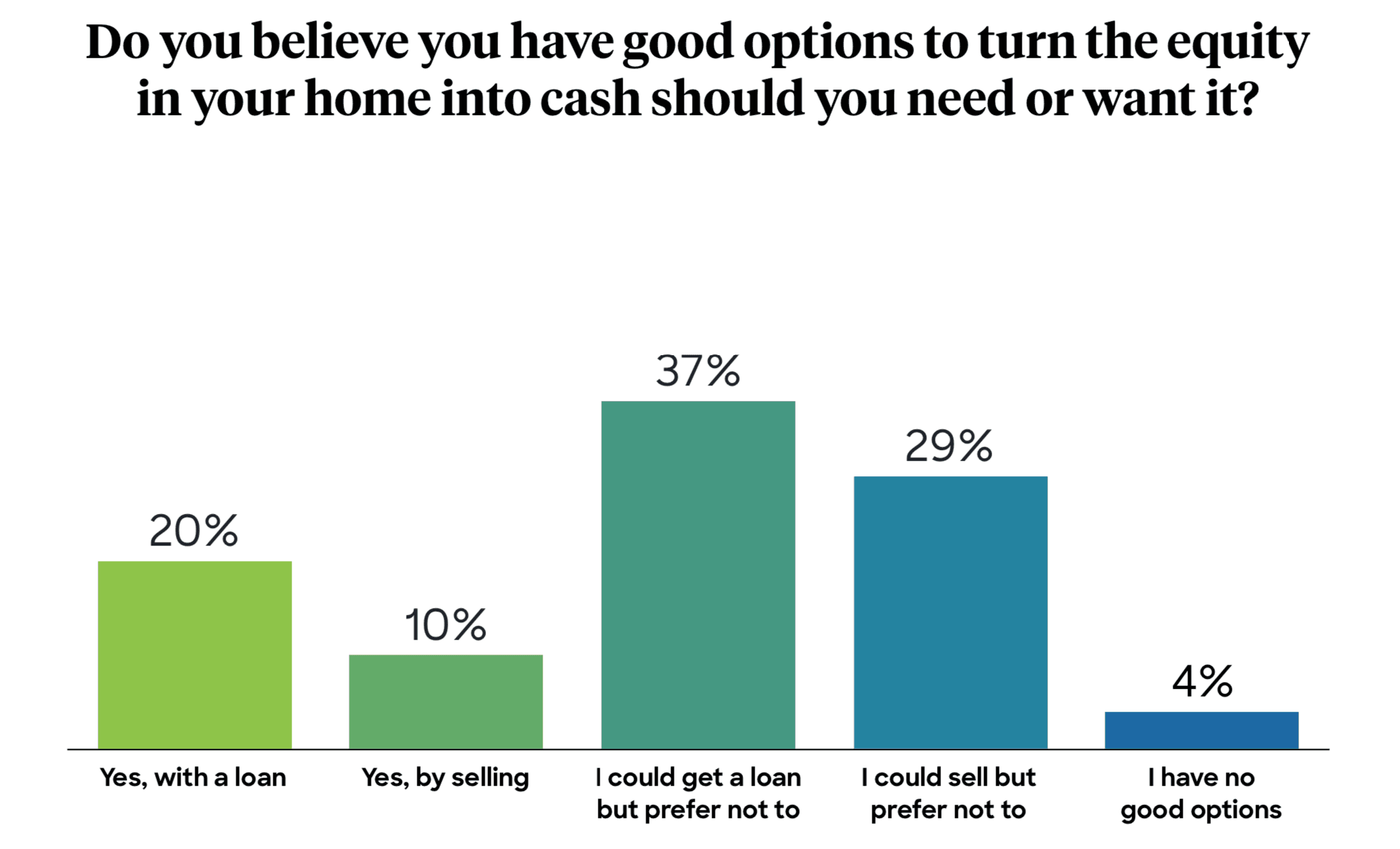 Denver homeowners in our study don’t feel like they have good options for turning the equity in their home into cash. Thirty-seven percent don’t want to take on a loan and the debt, interest, and monthly payments that come with it. Another 29 percent say they could sell their home to access equity but would prefer not to.